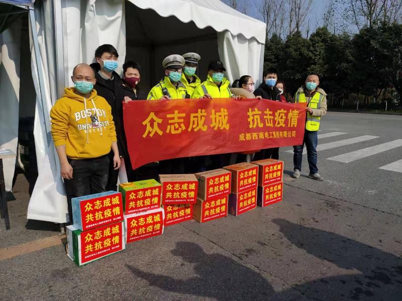 成都西南电工集团有限公司第一时间为疫情防控一线工作人员捐赠了水果、泡面、饮料、牛奶等五万余元物资,以实际行动承担企业应尽的责任和义务,主动参与到疫情防控工作中,为抗击新型冠状病毒疫情贡献力量。
